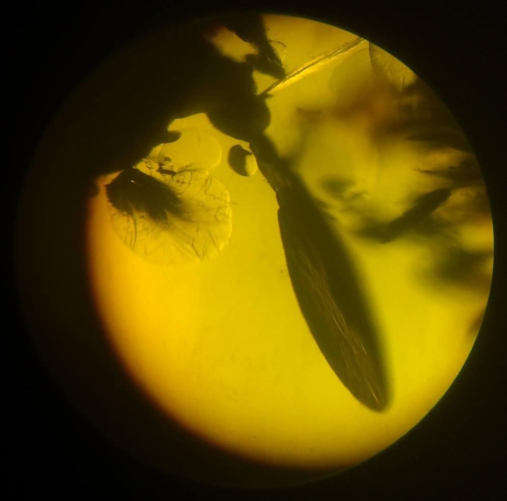 I received some beautiful amber samples as a gift and observed them under the microscope.